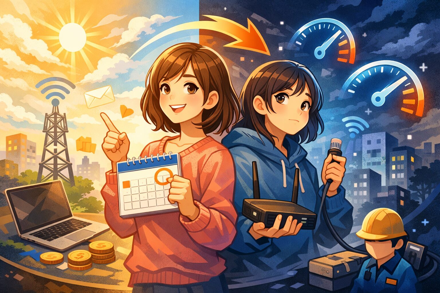 ネットが切れないようにするコツは、切り替え日の「前後」を空けることです。利用開始日は、工事完了やIPv6の開通日が基準になる場合があります。予定が詰まっている日より、予備日を作れる日を選ぶと安心です。