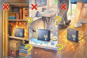 - 熱がこもる場所や水回り近くは避けるべき