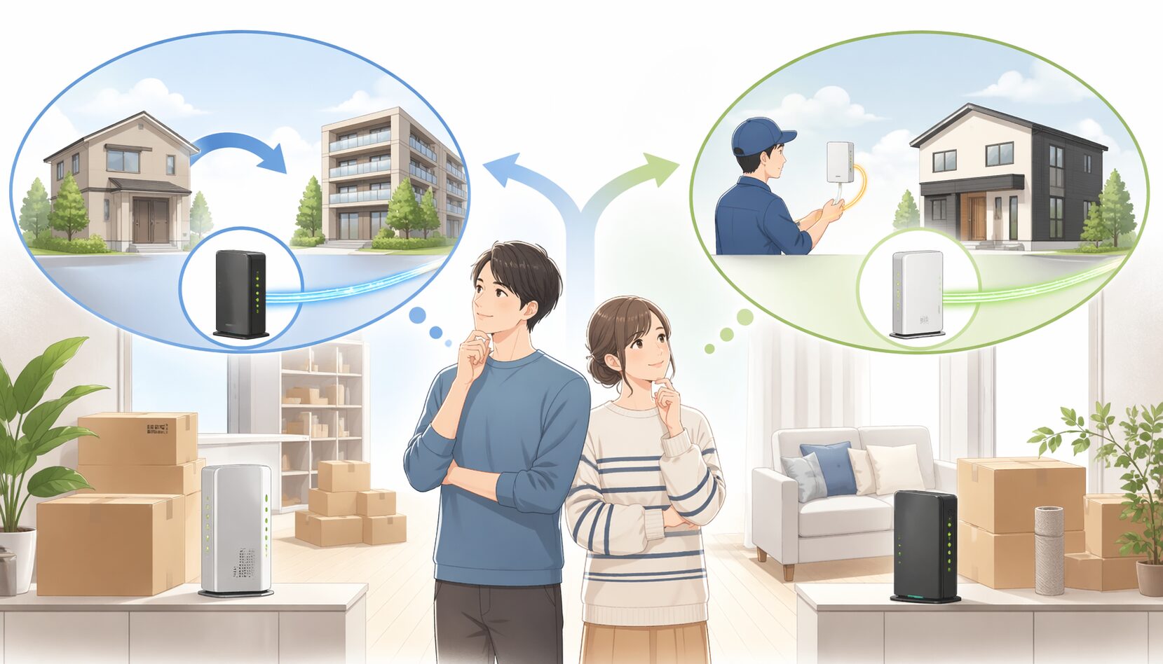 引っ越し時の光回線は、今の回線をそのまま移転するべきか、新規申込で乗り換えるべきか迷いやすいポイントです。